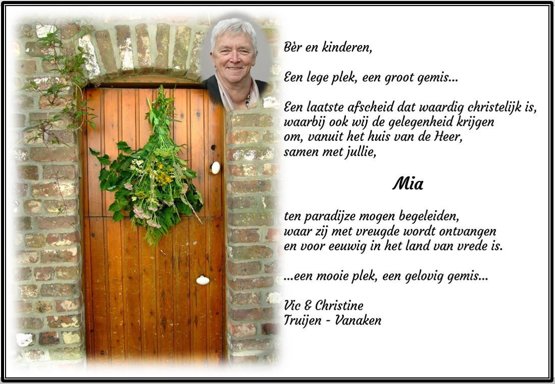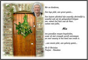 De kruidenwis van Mia hangt nog aan onze voordeur. We bidden om sterkte voor jullie die nu verder moeten zonder Mia.