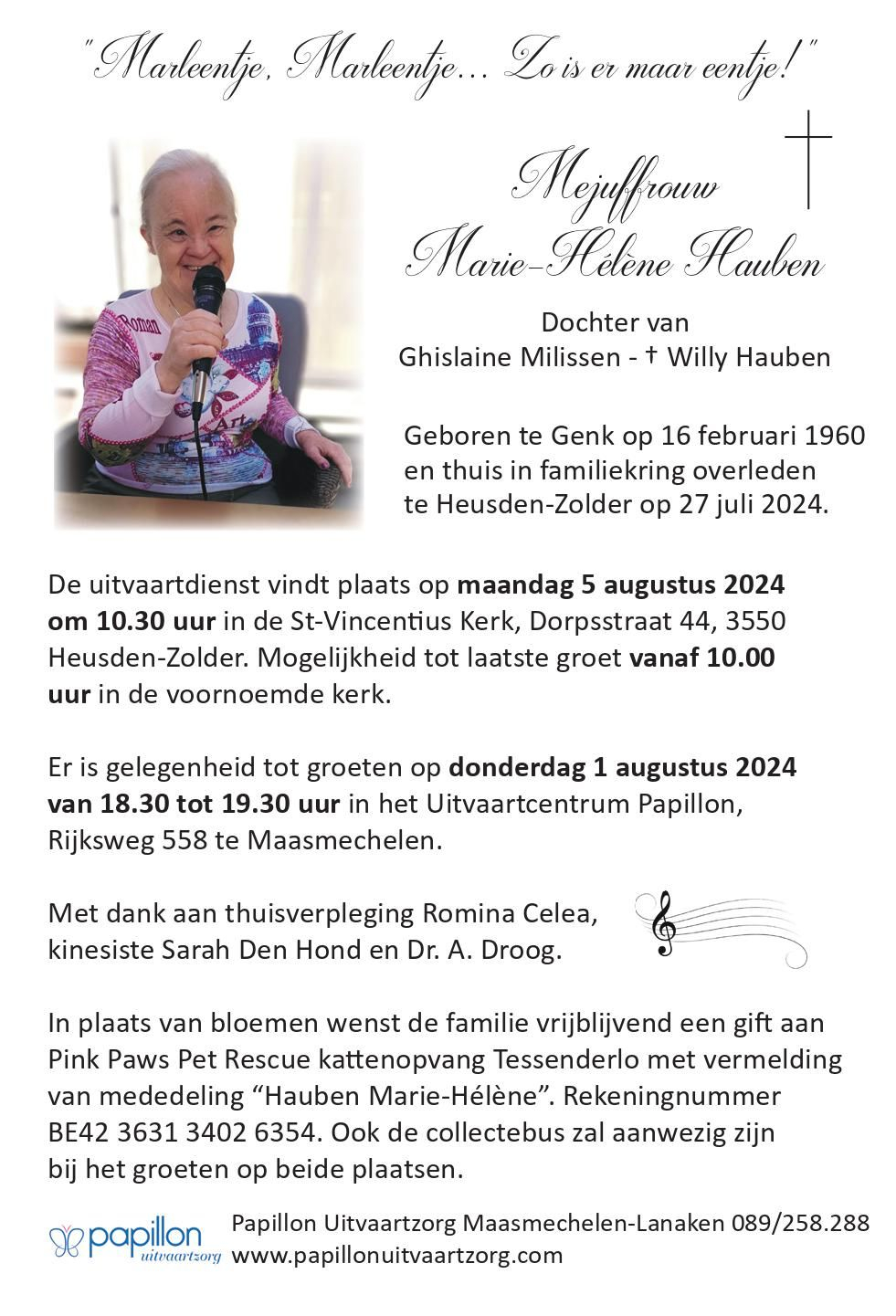 Oprechte deelneming en veel sterkte bij het heengaan van Marie Hélène 💮💮💮