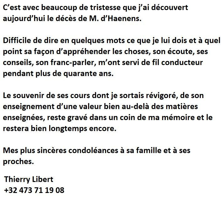 c'est très tardivement que j'apprends le décès du Professeur d'Haenens. Que de réunions motivantes et souvenirs. Reposez en paix.