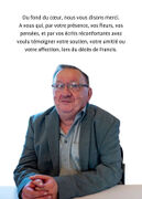 Dans ces moments difficiles que nous traversons suite au décès de mon cher papa, Francis AMEL, je tiens à exprimer ma profonde gratitude pour vos pensées, vos paroles réconfortantes, et vos marques d’affection. Vos condoléances et votre soutien ont été d’un grand réconfort pour notre famille