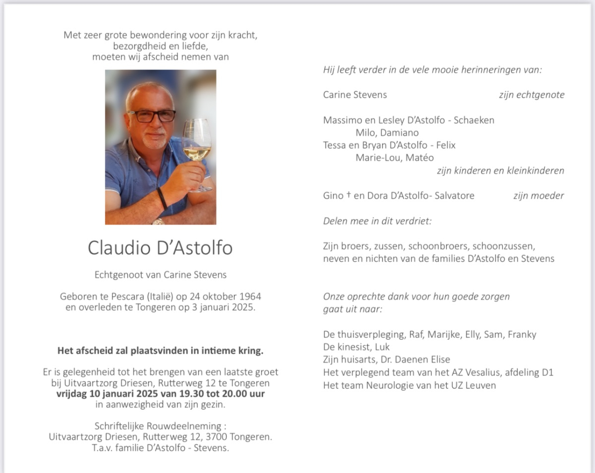 Sorry, voor dit late bericht maar mijn innige deelneming voor het verlies van je echtgenoot, papa en opa, heel veel sterkte toegewenst aan de ganse familie.