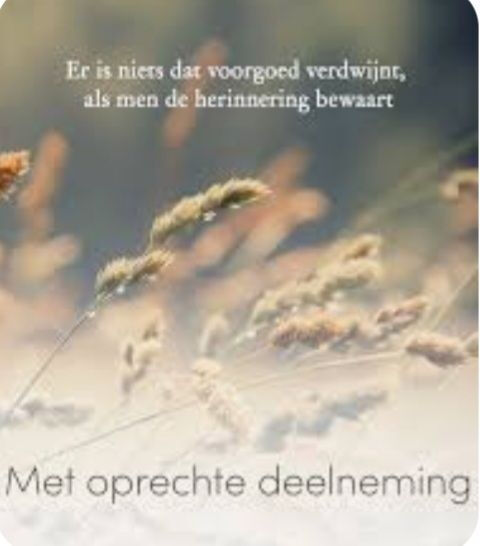 Aan de familie, innige deelneming en veel sterkte gewenst.
