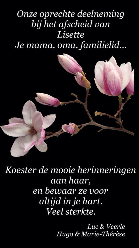 Lisette was een fijn mens, steeds begaan met de anderen. Wij gaan haar dankbaar herdenken.