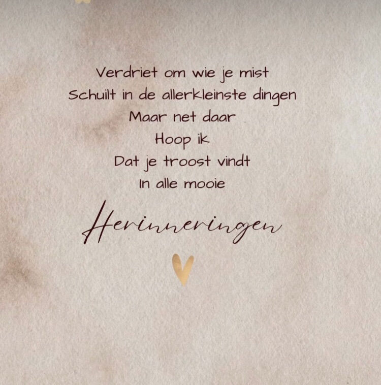 innige deelneming en veel sterkte in deze voor jullie moeilijke tijd