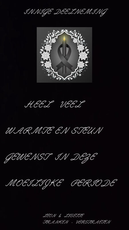 Oprechte deelneming bij het overlijden van jullie moeder.Jullie haar goed verzorgd tot het einde.Laat haar nu in vrede rusten.Veel sterkte