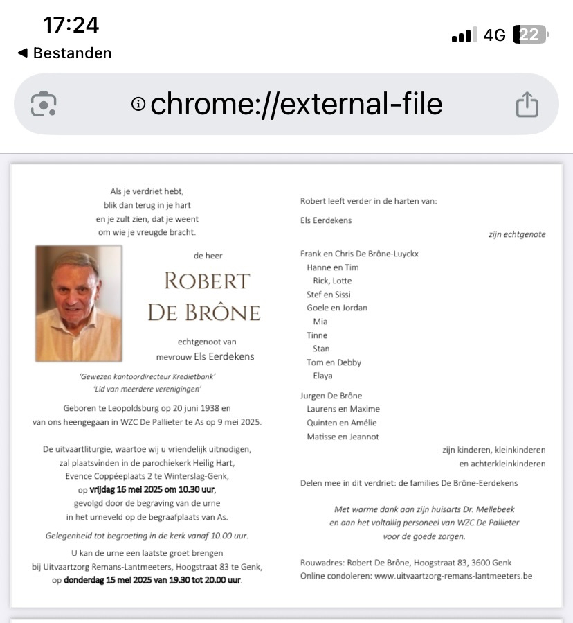 Mijn oprechte deelneming bij het overlijden van Robert.