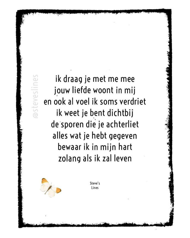 Met onvoorwaardelijke liefde heb jij voor ons geleefden gezorgdNu moeten wij met veel verdriet afscheid nemen van jou.
