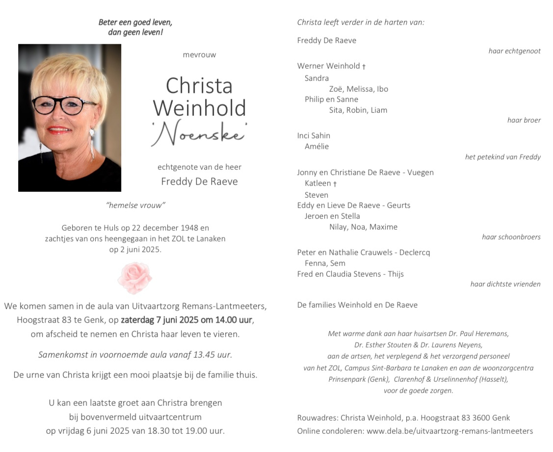 Hier kan enkel ingelogd worden door de beheerder, dit is een naaste van de overledene. Wil u zelf (mede-)beheerder worden van deze pagina, contacteer ons via info@inmemoriam.be. Voor meer info verwijzen we u graag naar onze FAQ.