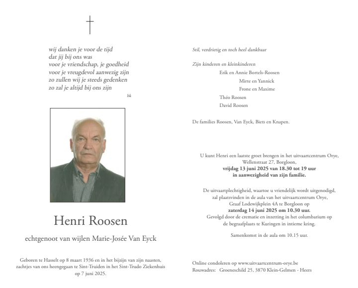 Overleden 07/06/2025 Sint-Truiden