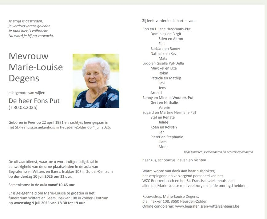 Veel sterkte met het verlies van deze lieve vrouw !. Innige deelneming . Caris Rita .