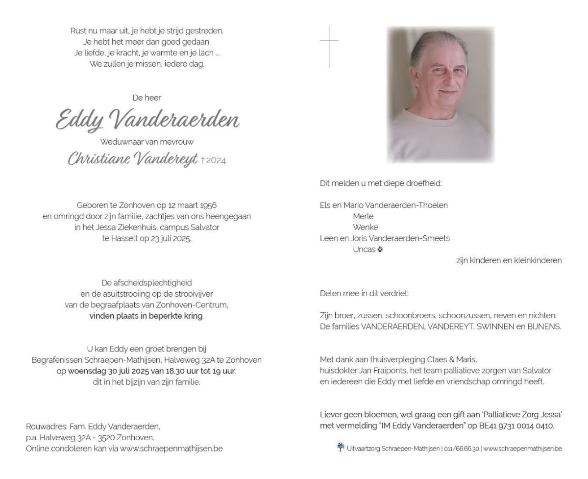 Wij wensen de hele familie veel sterkte in deze moeilijke dagen en weken die er gaan aankomen wij hebben Eddy goed gekend als collega bij de firma Convents in Koersel en hebben hem zeer goed gekend als een goede vakman in de interieur bouw,en een goede vriend voor andere collega's.