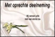 Gecondoleerd met dit grote verlies. Heel veel sterkte gewenst".