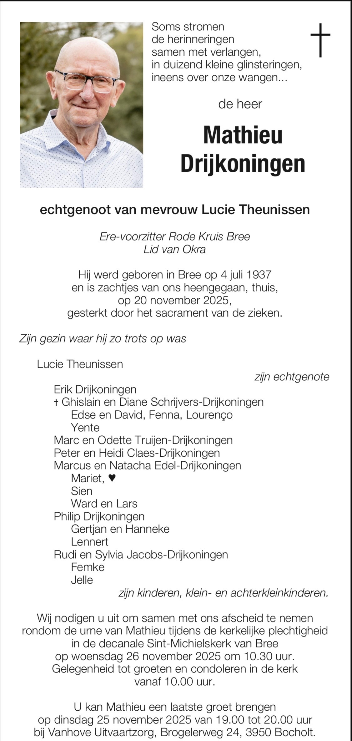 De mooie herinneringen en de liefde voor jullie echtgenoot, vader, schoonvader, opa zullen altijd blijven bestaan en hopelijk dit verlies enigszins verzachten. Veel sterkte.
