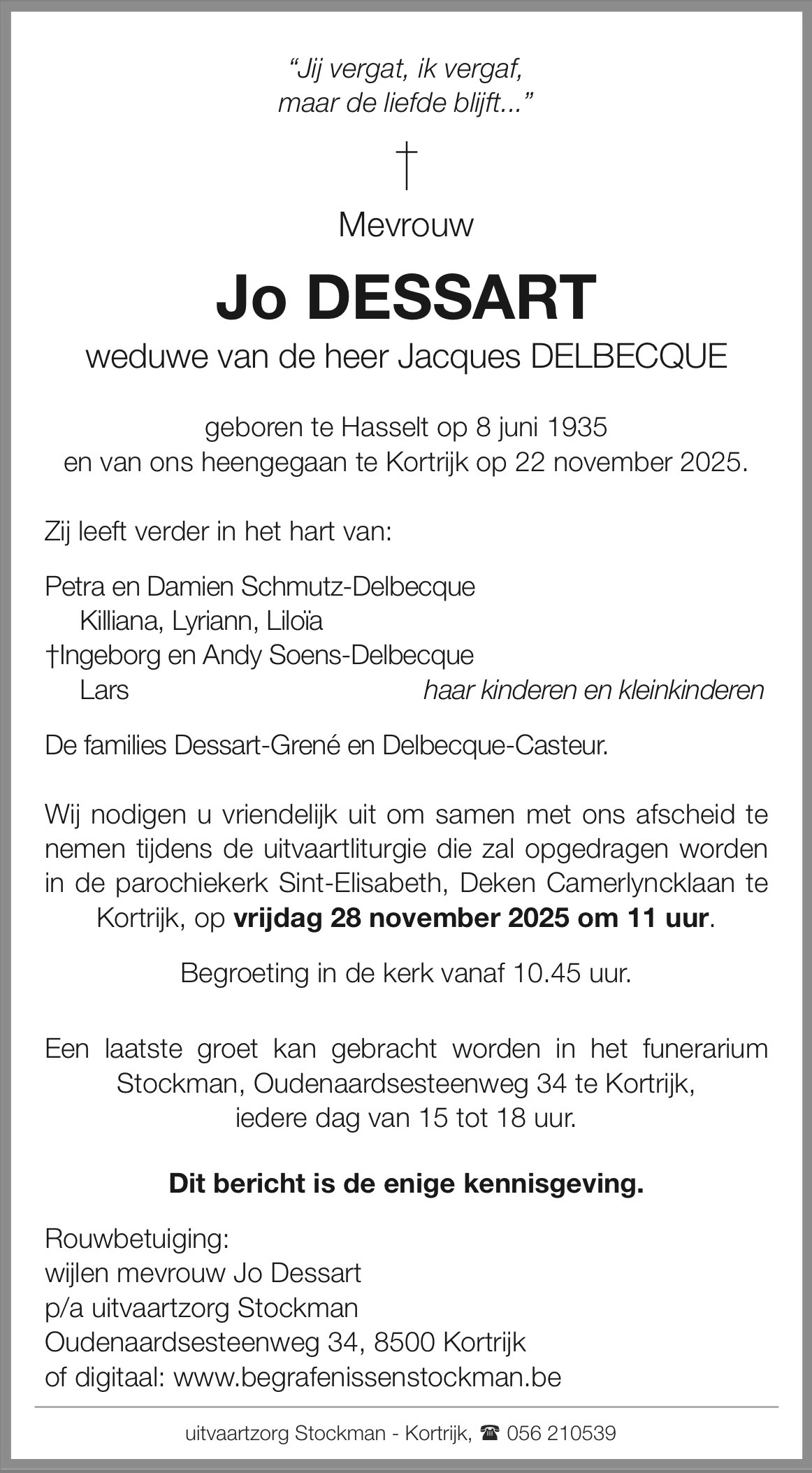 Als laatste van de vijf zussen Dessart heb je ons verlaten. Dat is op zich al heel raar. Een generatie die is verdwenen.