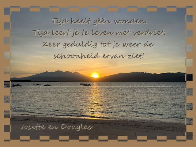 Nooit vragen, nooit klagen.Zijn pijn in stilte dragen.Zijn handen hebben voor ons gewerkt. Zijn hart heeft voor ons geklopt. Zijn ogen hebben ons tot het laatst gezocht.