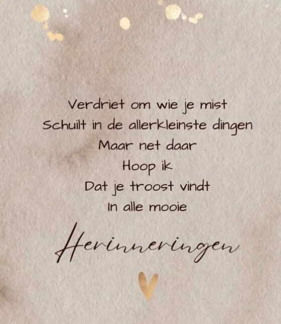 Heel veel sterkte. Er komen heel veel mooie herinneringen naar boven.