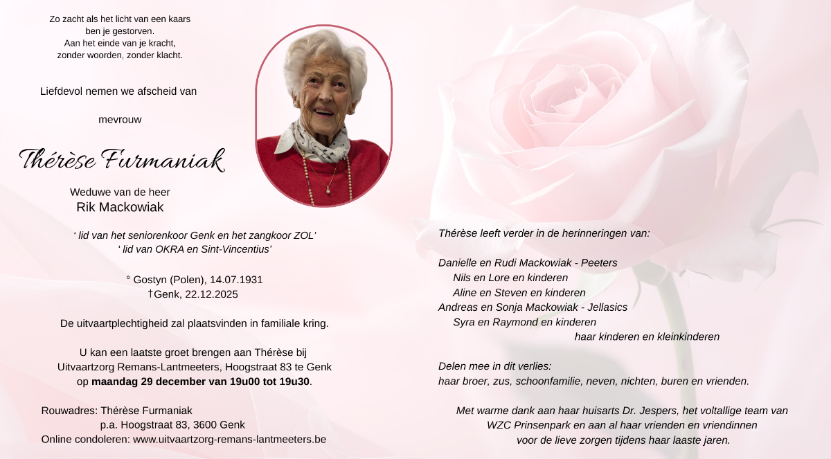 Hier kan enkel ingelogd worden door de beheerder, dit is een naaste van de overledene. Wil u zelf (mede-)beheerder worden van deze pagina, contacteer ons via info@inmemoriam.be. Voor meer info verwijzen we u graag naar onze FAQ.