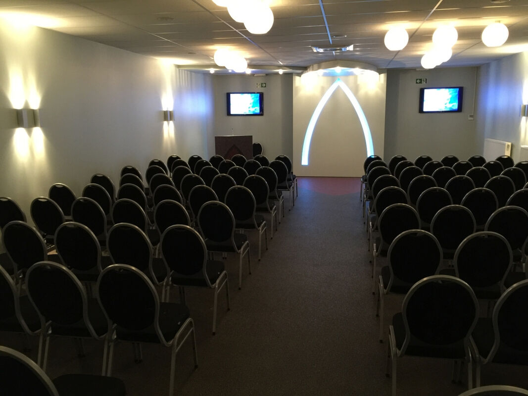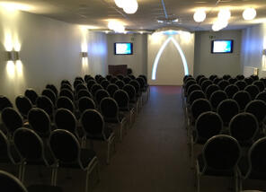 Naast een traditionele kerkelijke dienst kan u ook kiezen voor onze aula met plaats voor 130 zittende en 20 rechtstaande personen.