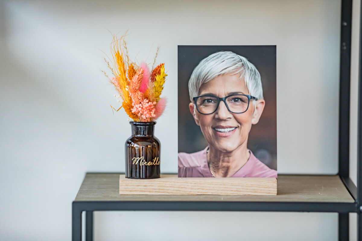 Angélique en haar team proberen daartoe bij te dragen, met rouwbrieven en -prentjes die de persoonlijkheid van de overledene typeren.
