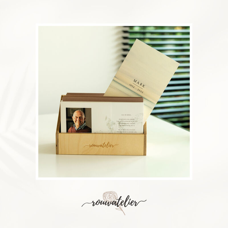 Om hen en de families de keuze te kunnen geven, ontwikkelden zij een brievenbox. Deze box bevat eigentijdse en frisse ontwerpen van rouwbrieven, die families ook kunnen inspireren bij het samenstellen van de aankondiging.